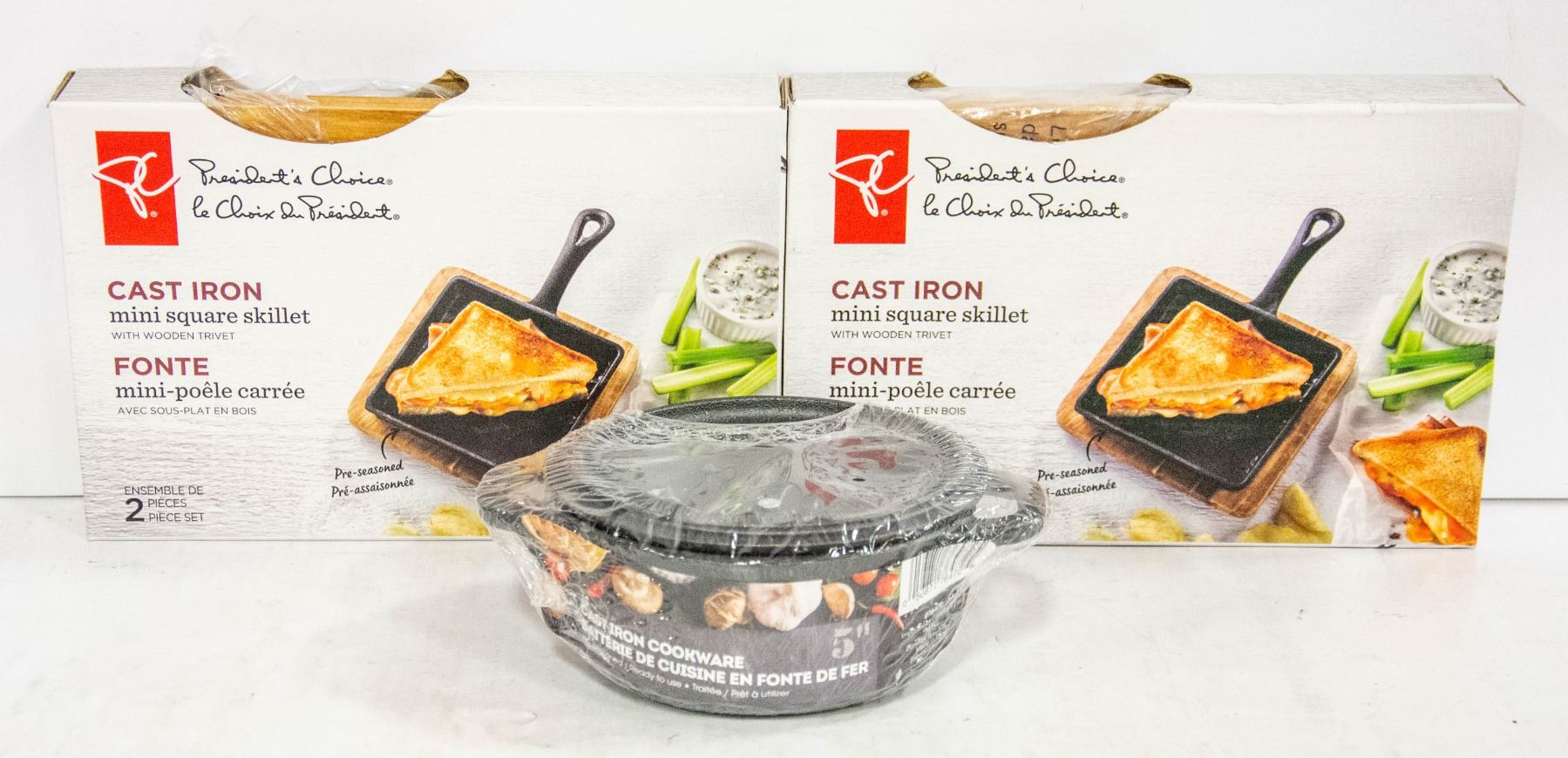 2 (2-PC SETS) 6" MINI SQUARE FRYING PANS WITH WOODEN BASE & 5" POT WITH LID