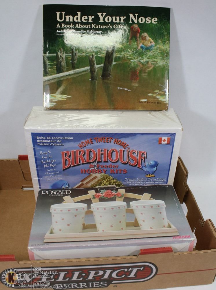 BIRD HOUSE & FEEDER KIT W/ROSEBUD COLLECTION POTTING VASES & MORE
