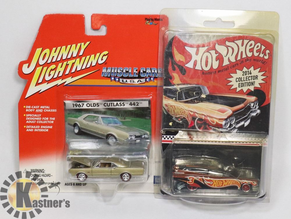 EDITION 59 CADILLAC FUNNY CAR BOX 37-0910 W/SEALED JOHNNY LIGHTING MUSCLE CAR 1967 OLDS CUTLASS #442 1:64 SCALE (USA). ONE PACKAGE IS DAMAGED. COLLECTIBLES