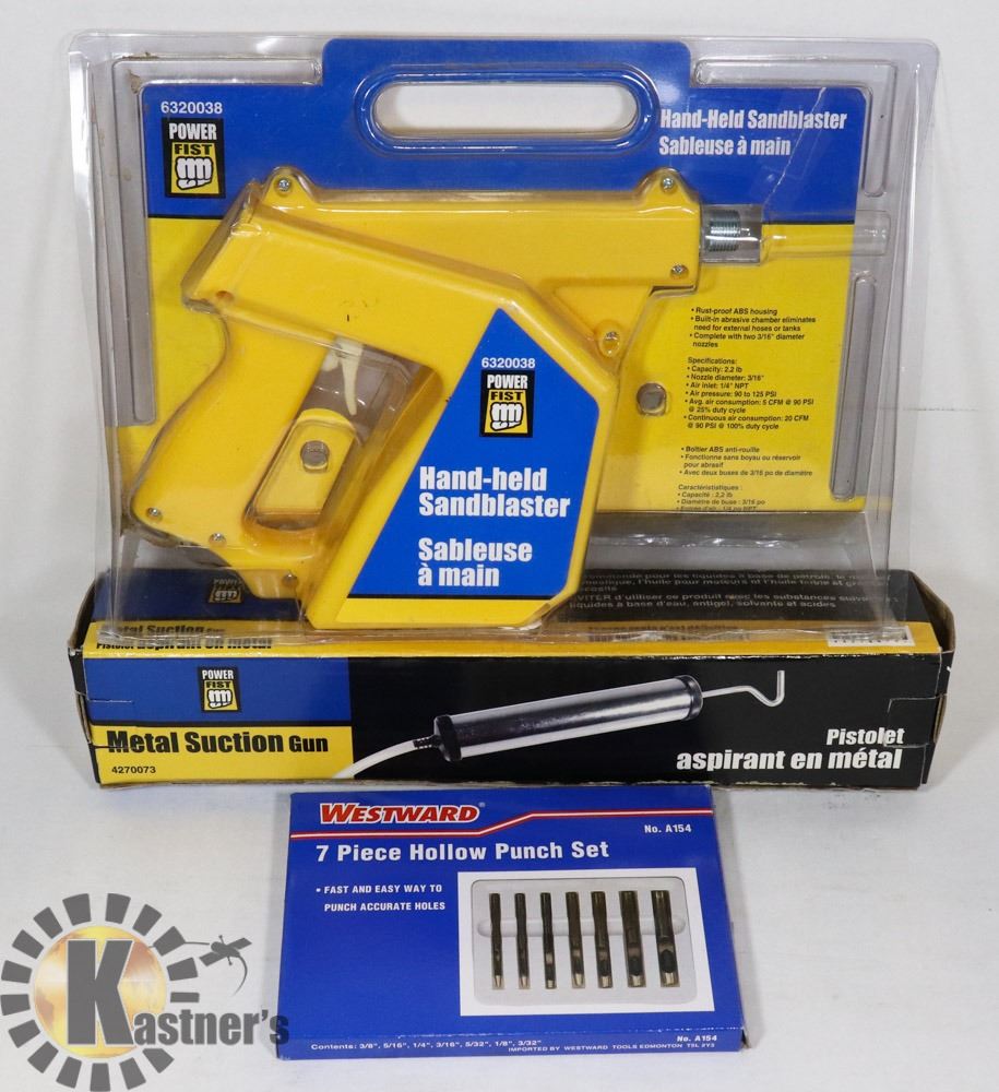 SAND BLASTER W/WESTWARD 7 PC HOLLOW PUNCH SET 3/8", 5/16", 1/4", 3/16", 1/18", 3/32" & MORE. TOOLS