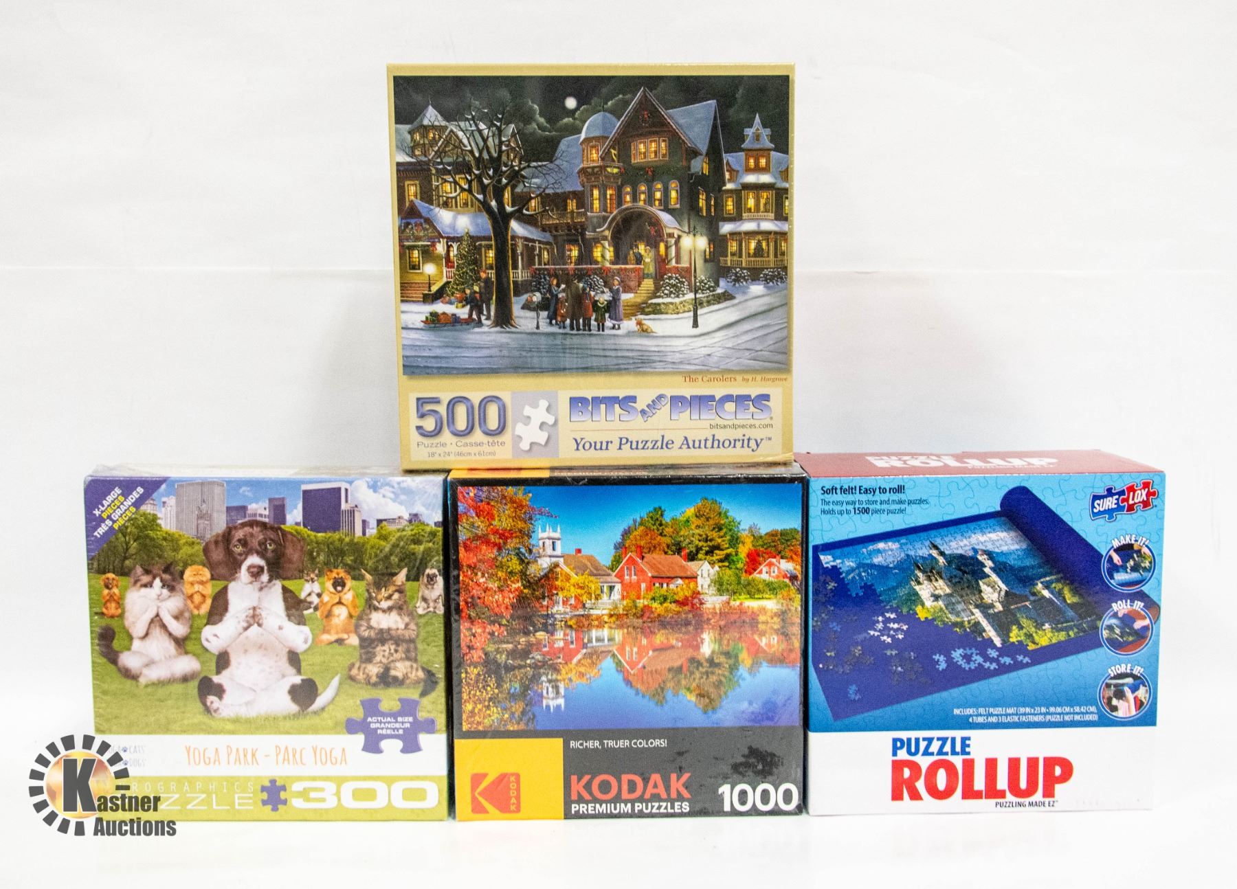 CAROLERS 500 PC, EUROGRAPHICS YOGA PARK CATS & DOG'S 300 PC, KODAK 1000 PC W/NEW PUZZLE ROLL-UP TO 1500 PC **ALL ITEMS MUST BE REMOVED BY 5PM SATURDAY, DECEMBER 9TH 2023. ALL REMAINING ITEMS WILL BE SUBJECT TO A $6.00 PER DAY STORAGE CHARGE. ANY ITEMS REMAINING AFTER THURSDAY, DECEMBER 21ST 2023 WILL BE CONSIDERED FORFEITED. NO REFUNDS WILL BE ISSUED FOR FORFEITED ITEMS. TO SCHEDULE A PICK UP APPOINTMENT CLICK HERE