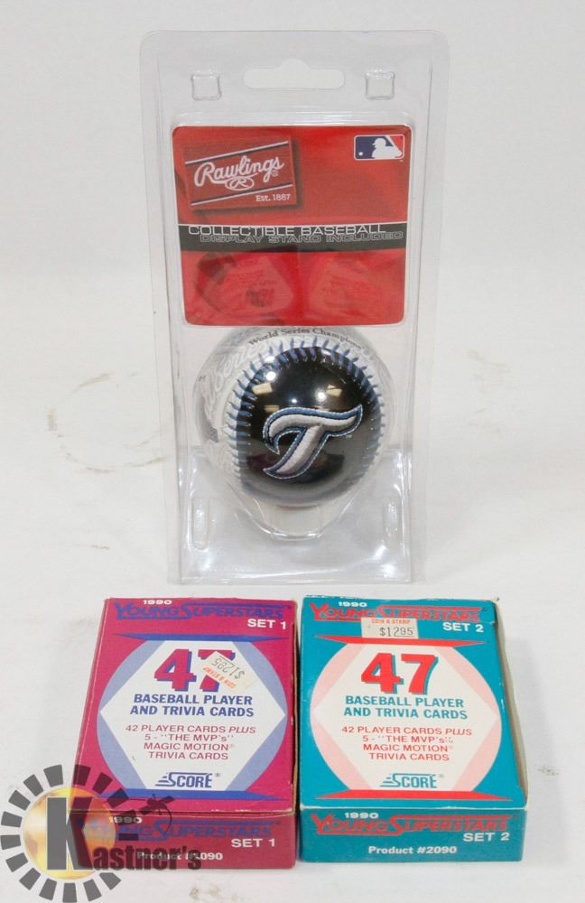 SERIES CHAMPION BASEBALL 1992-93 W/SCORE 1990 YOUNG SUPERSTARS SET 1 OF 47 & SET 2 OF 47 TRIVIA CARDS (UNUSED). COLLECTIBLES