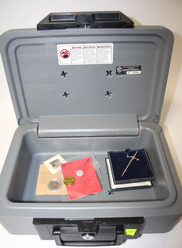SENTRY SAFE (NO KEY) WITH ESTATE COINS
