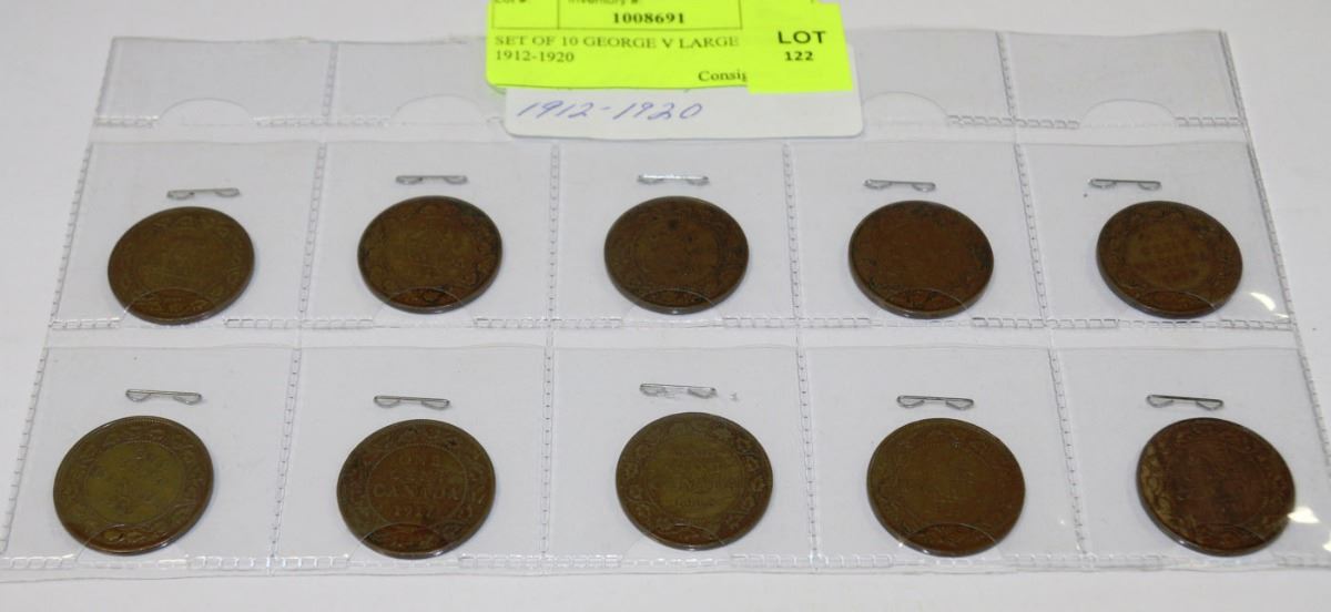 SET OF 10 GEORGE V LARGE CENTS 1912-1920