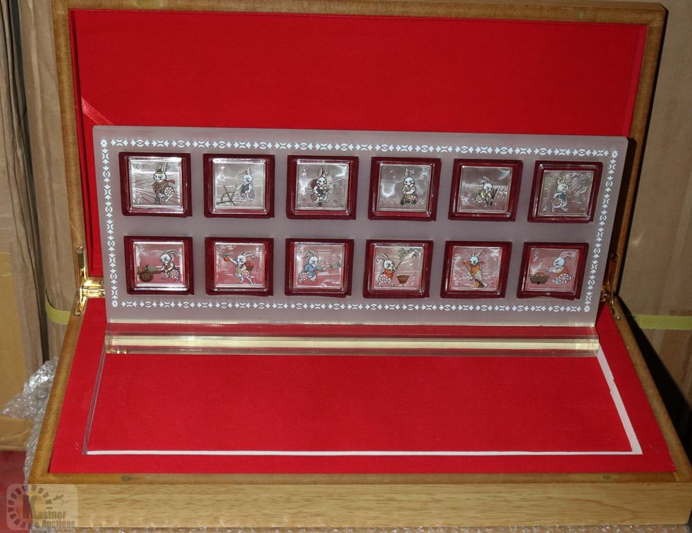 SET OF 12 ELECTROPLATED RABBIT COINS
