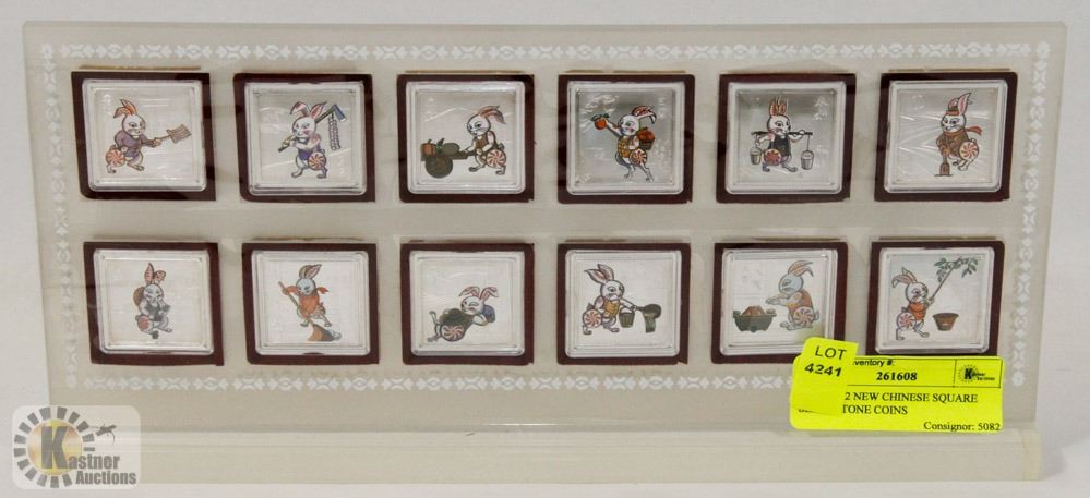/RABBIT MEDALLIONS IN STAND UP DISPLAY STAND. COLLECTIBLES.