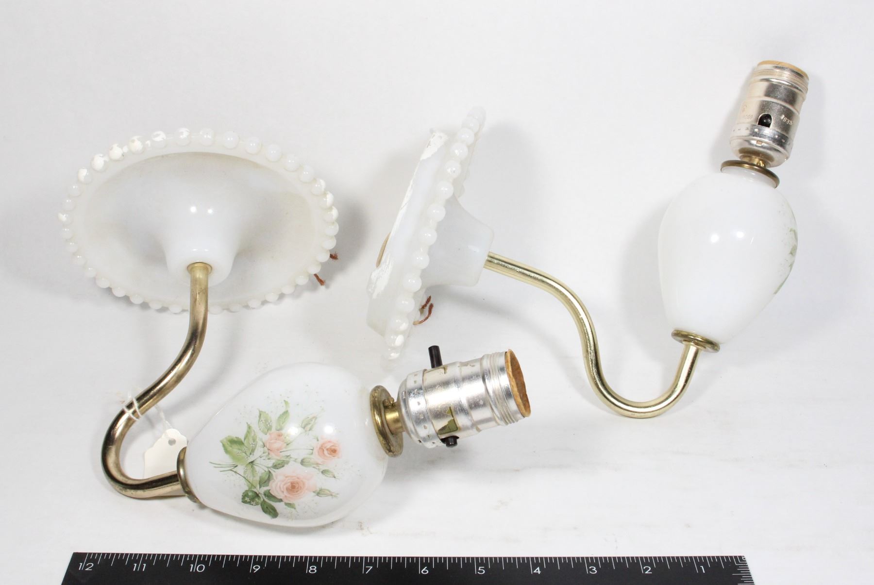 SET OF 1960’s MILK GLASS WALL LIGHTS BOUDOIR ROSE
