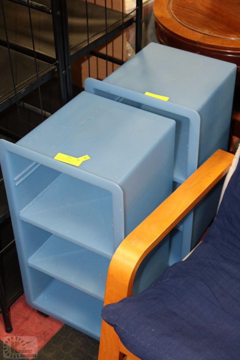 SET OF 2 BLUE PLASTIC STORAGE CONTAINERS ON WHEELS
