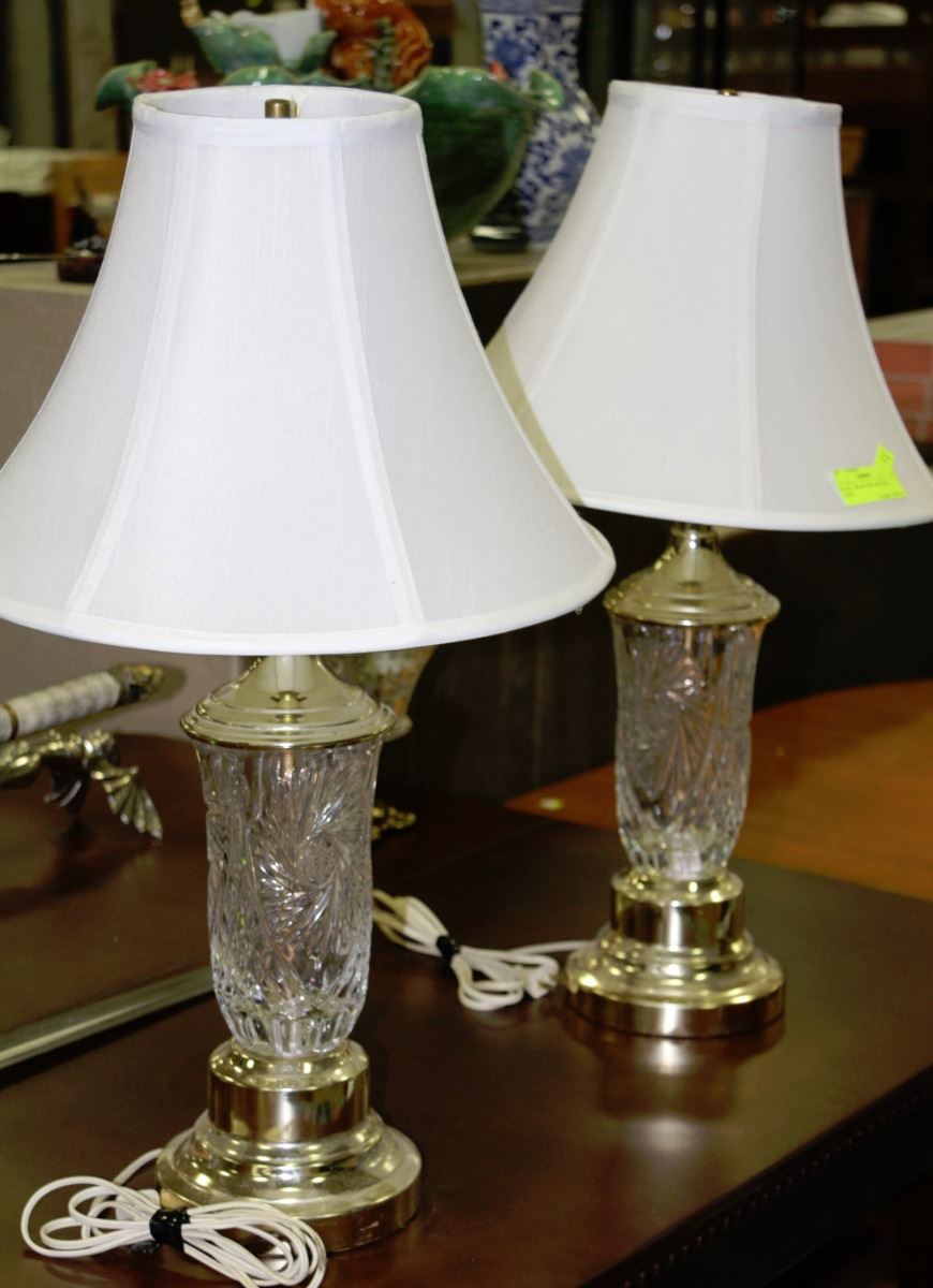 SET OF 2 BRASS AND PINWHEEL CRYSTAL LAMPS