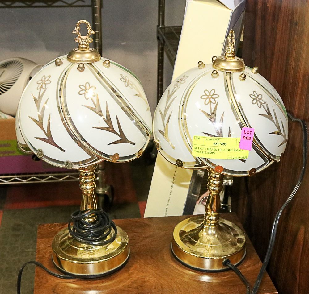 SET OF 2 BRASS TRI-LIGHT SMALL TOUCH LAMPS