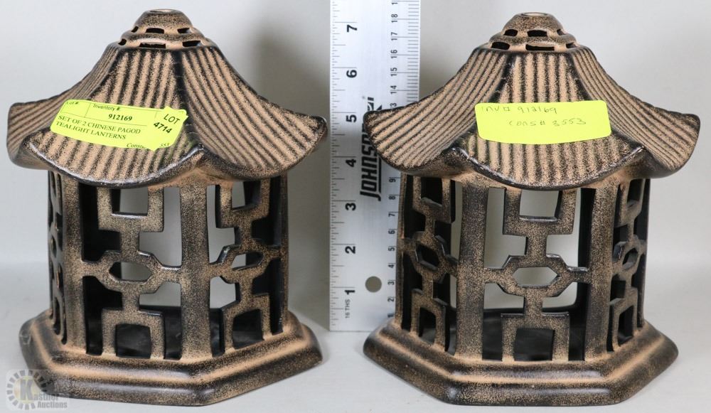 SET OF 2 CHINESE PAGODA TEALIGHT LANTERNS