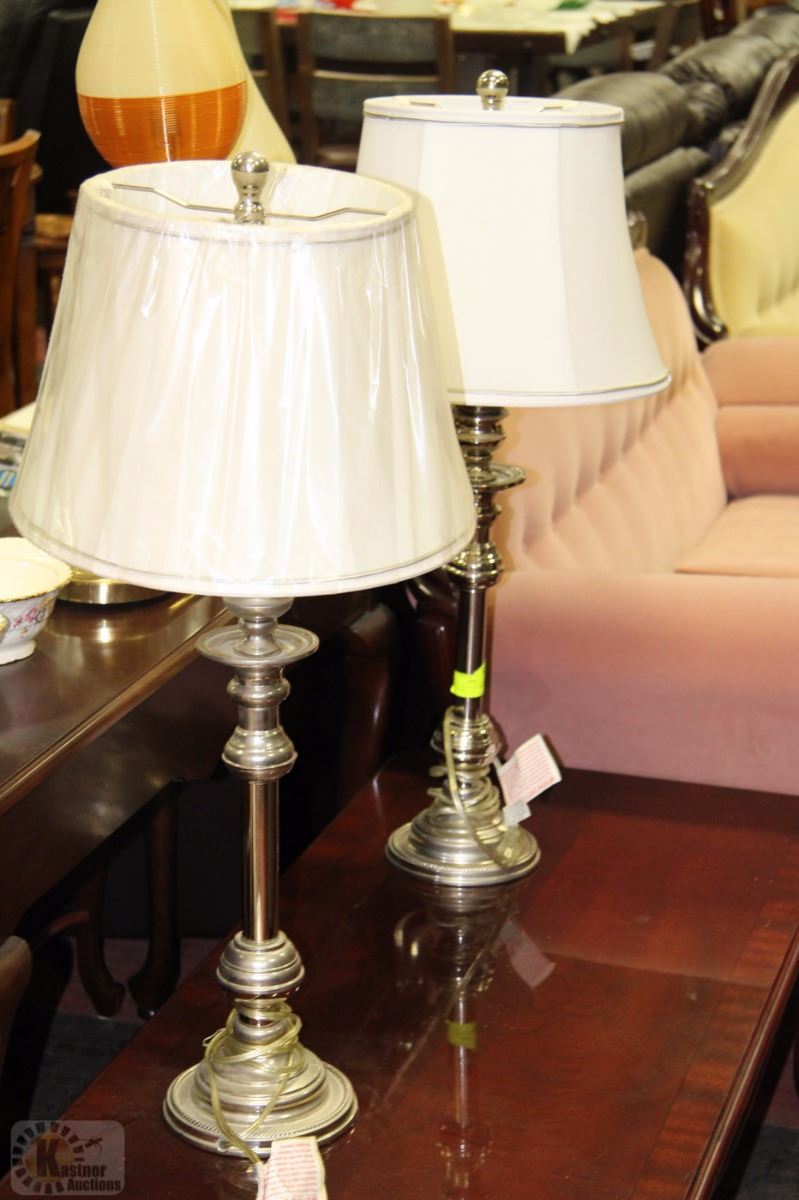 SET OF 2 CHROME/SILVER LOOKING TABLE LAMPS