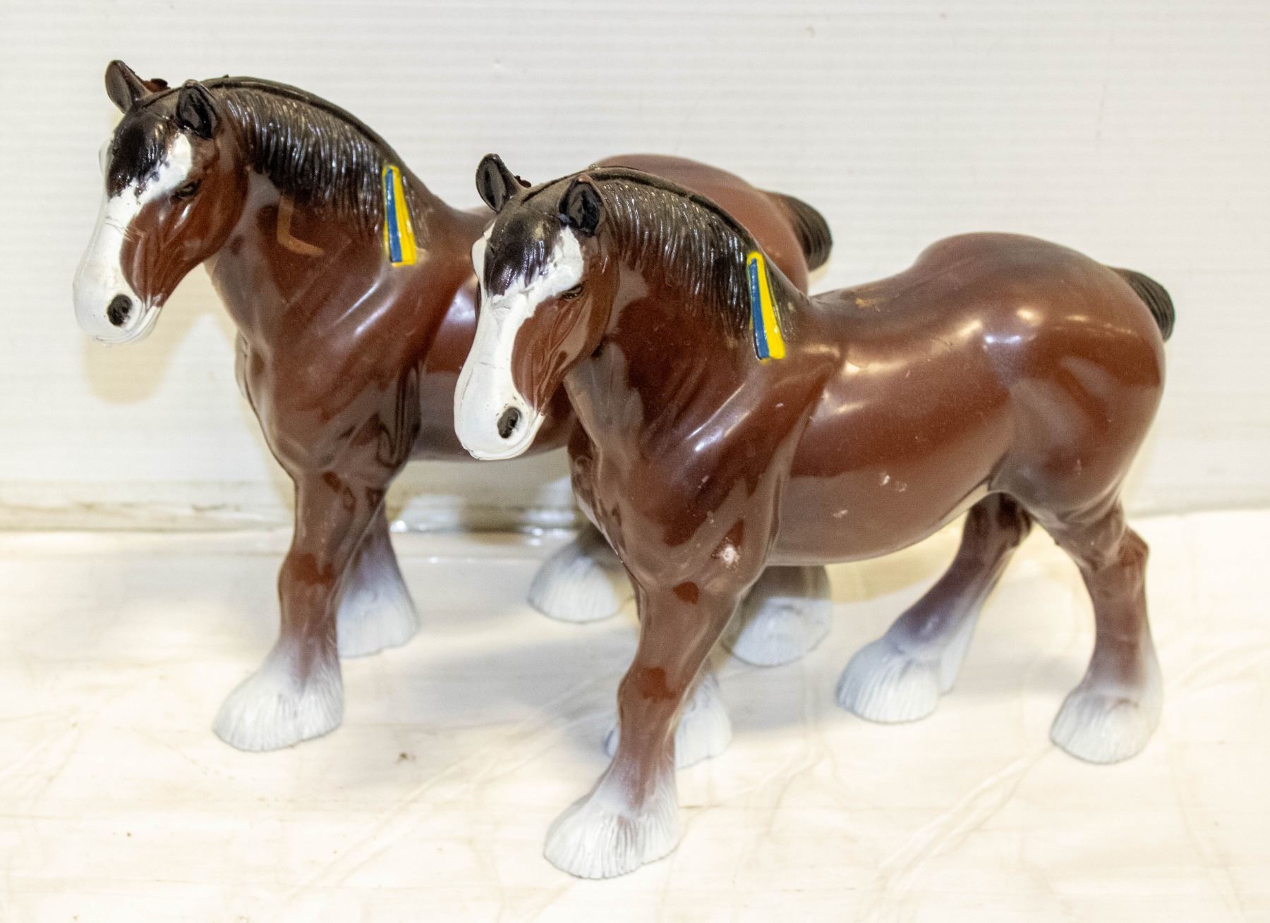 SET OF 2 CLYDESDALE PLASTIC HORSE FIGURINES