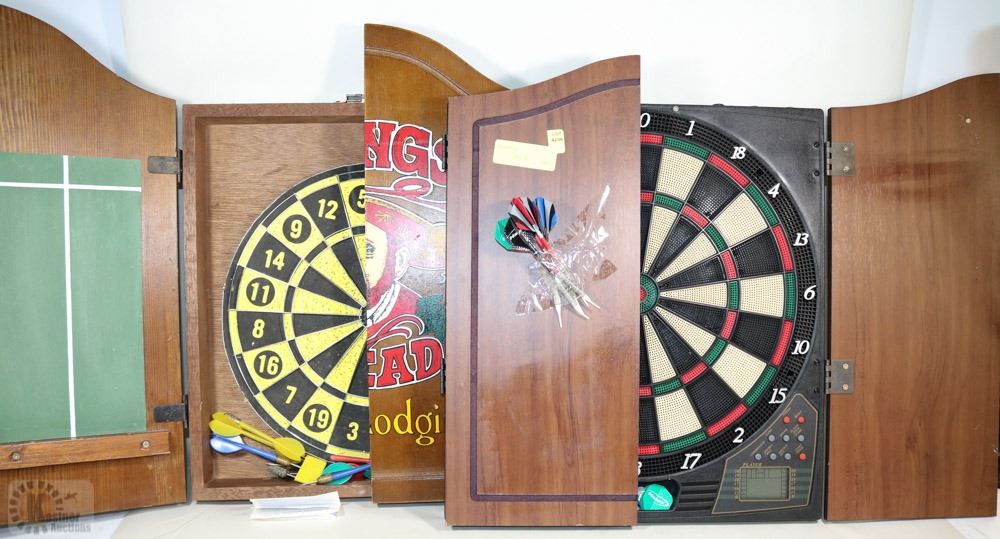 ON BATTERIES AND ONE IS A DARTBOARD AND BASEBALL BOARD.
