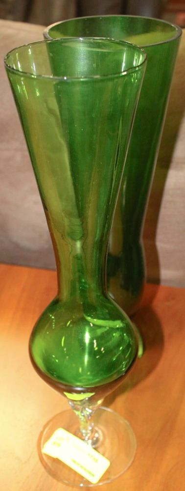 SET OF 2 GREEN GLASS VASES