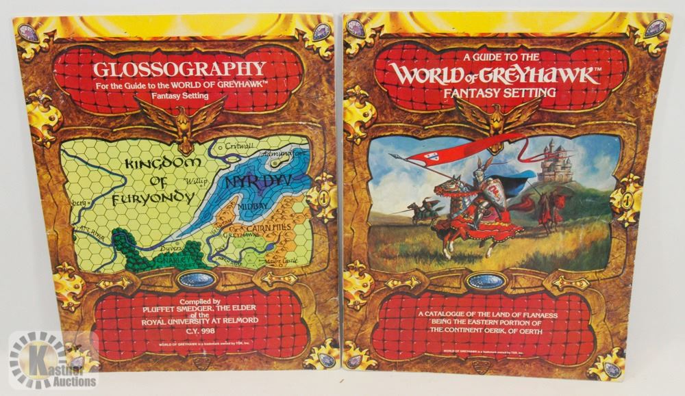 GLOSSOGRAPHY FIRST PRINTING 2ND EDITION W/WORLD OF GREY HAWK 2ND EDITION. COLLECTIBLES