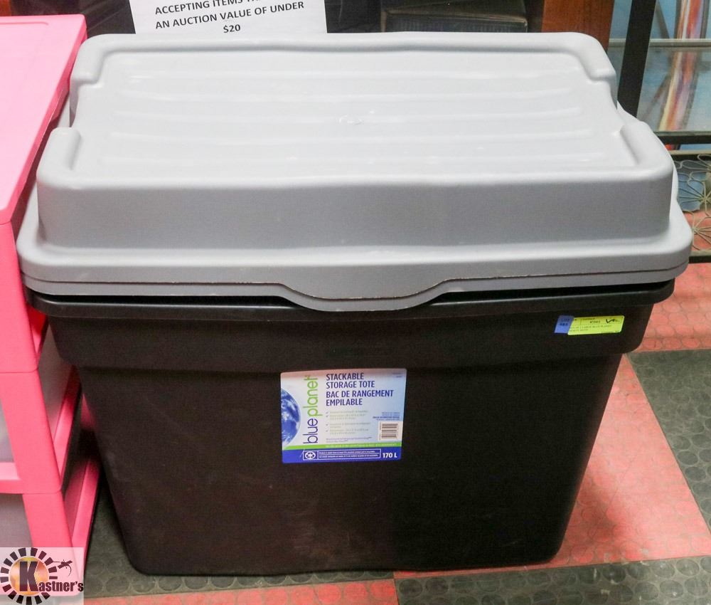 STORAGE BINS WITH HINGED & RAISED LIDS (BLACK WITH GREY LIDS) - 170 L - GENERAL, STORAGE