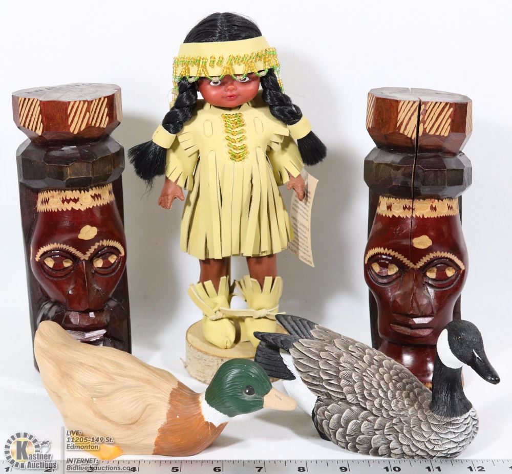 SCULPTURE CANADA GOOSE SIGNED & KOSHOAN GENUINE NATIVE DOLL (CANADA)
