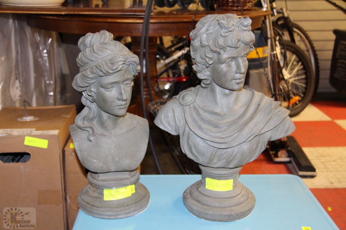 SET OF 2 ROMAN BUSTS - MAN 17.5" TALL WOMAN 16"