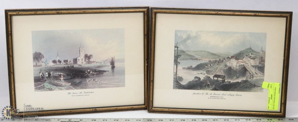 PRINTS "THE GREEN AT FREDERICTON" & JUNCTION OF ST FRANCIS AND MAGOG RIVERS SHERBROOKE QUE BY W.H. BARTLETTN (BOTH 1809-1854). COLLECTIBLES
