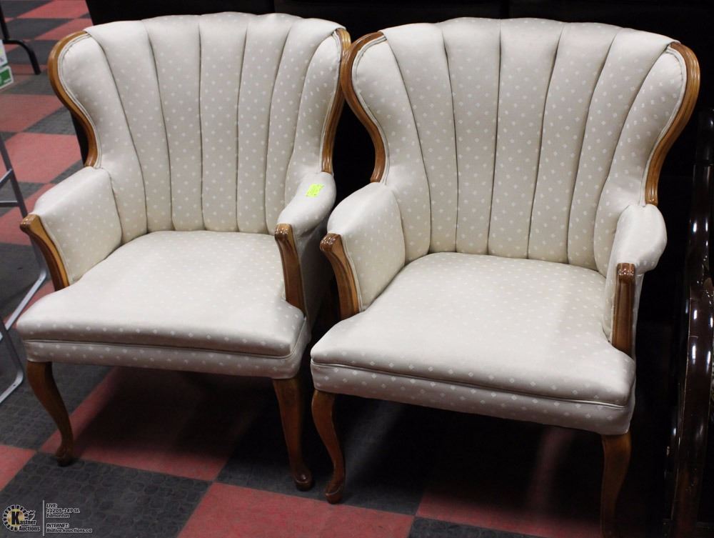SET OF 2 WOOD FRAMED CREAM COLORED ACCENT CHAIRS