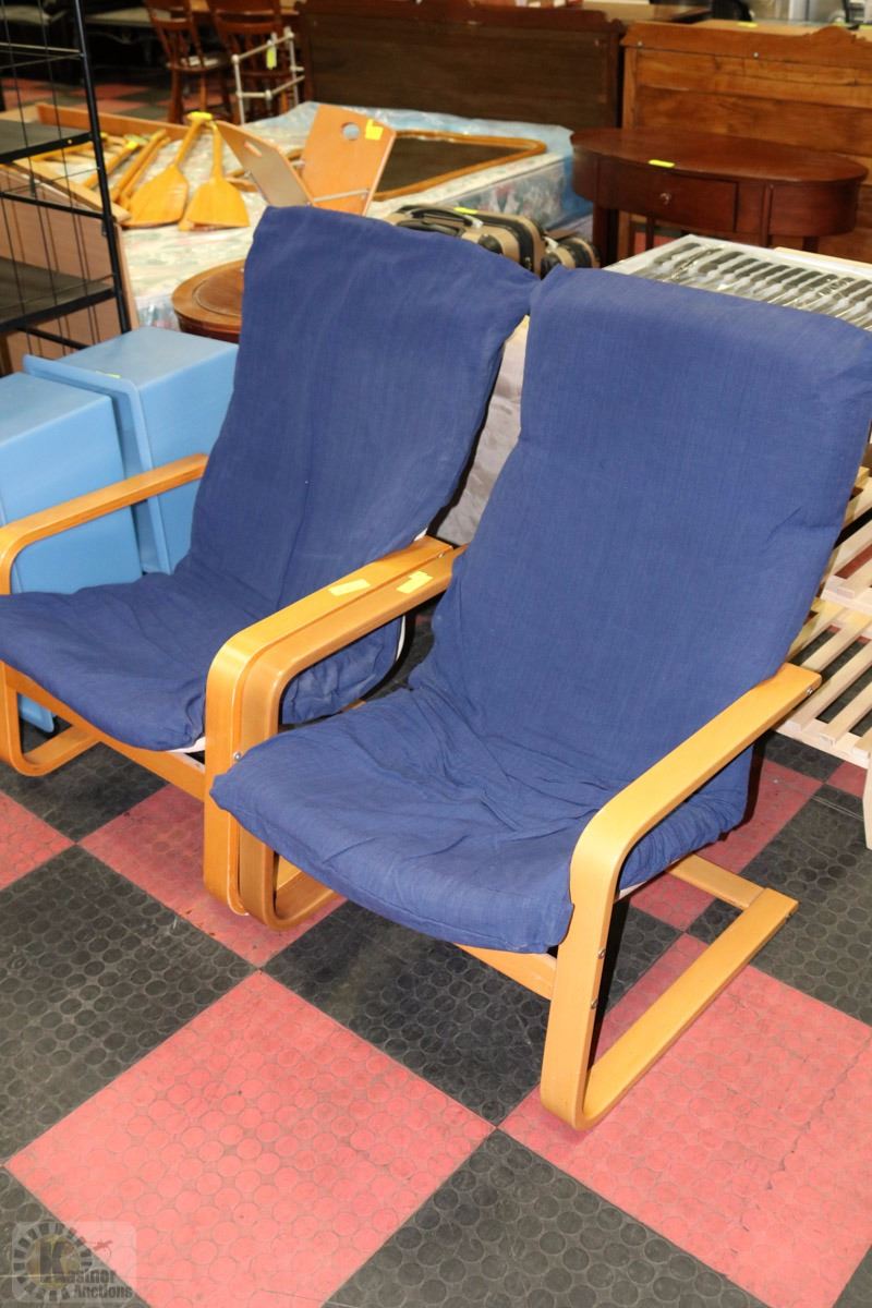 SET OF 2 WOODEN CHAIRS WITH BLUE FABRIC