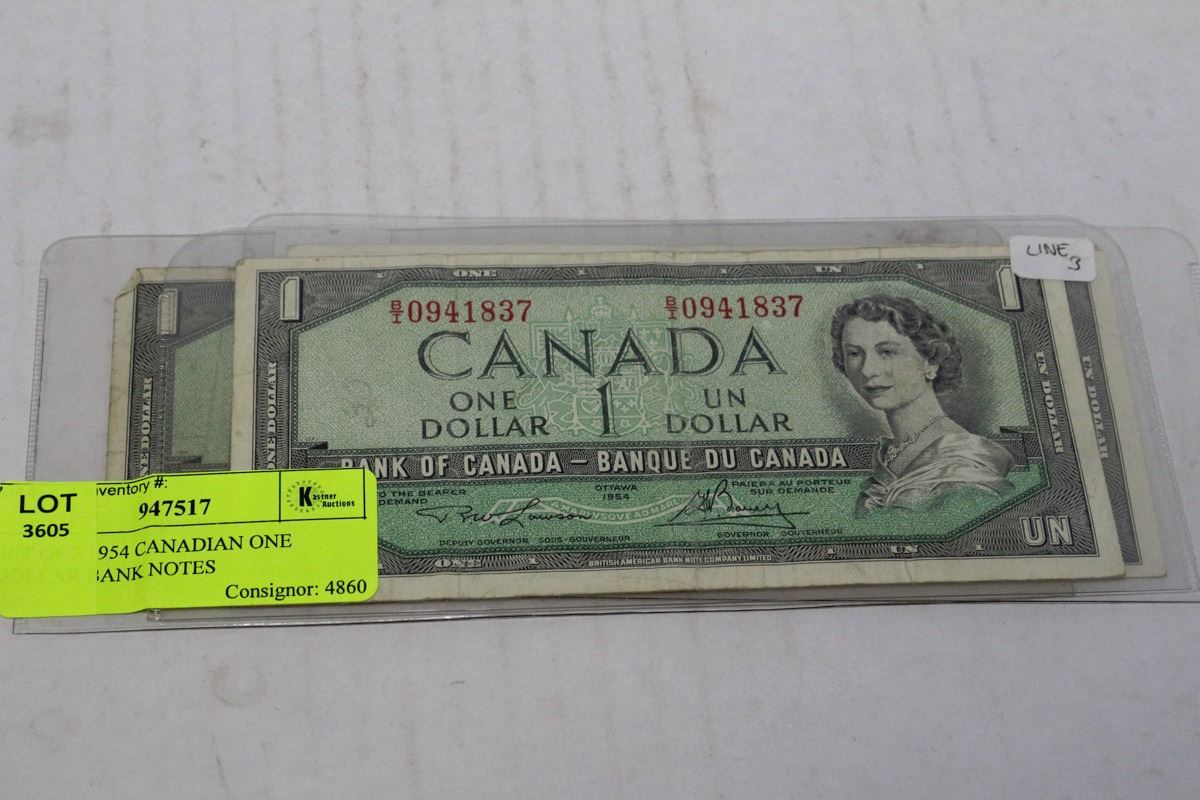 SET OF 3 1954 CANADIAN ONE DOLLAR BANK NOTES