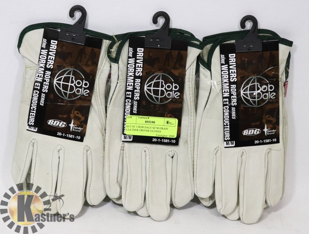 SET OF 3 BOB DALE SZ M GRAIN LEATHER DRIVER GLOVES