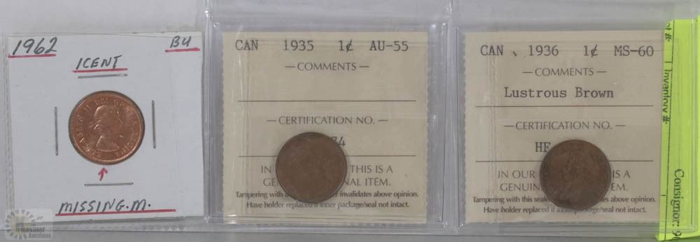 MISSING M), 1935 (GRADED AU55) AND 1936 (GRADED MS60)