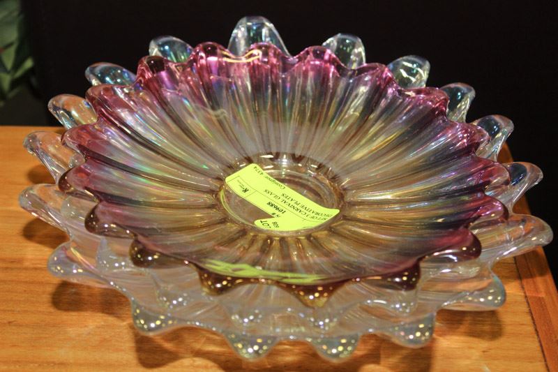 SET OF 3 CARNIVAL GLASS DECORATIVE PLATES