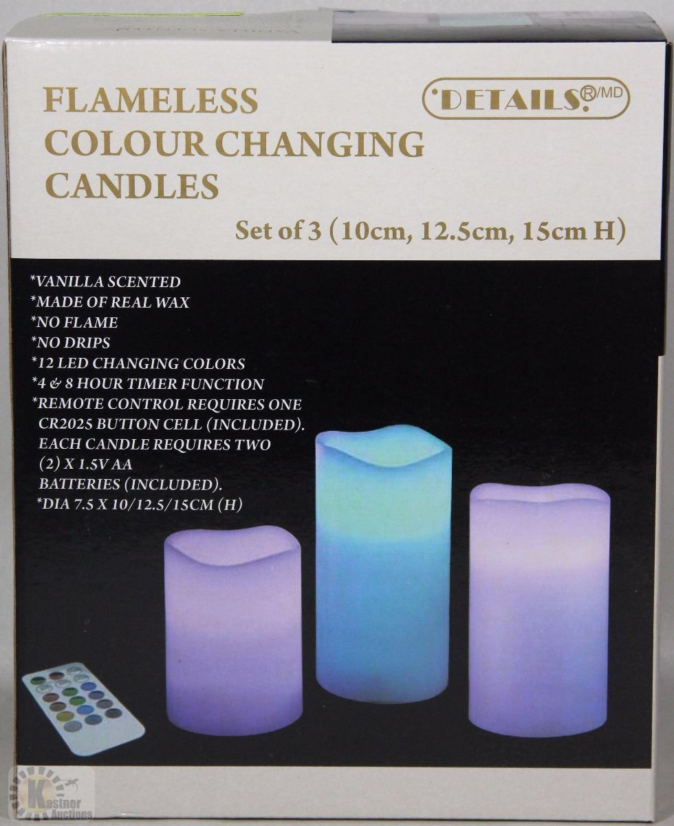 SET OF 3 FLAMELESS COLOUR CHANGING CANDLES
