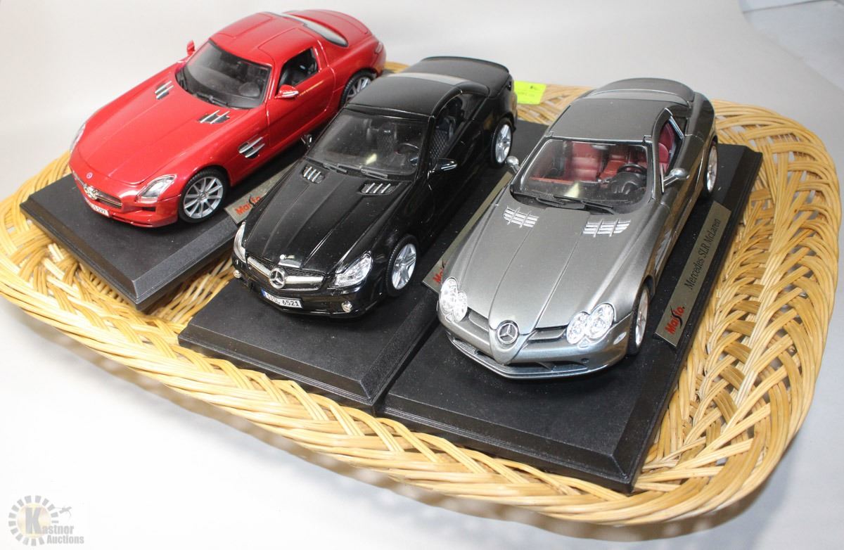 CARS: SLR MCLAREN, SL65AMG AND SLSAMG. DOORS AND HOODS AND TRUNKS OPEN.