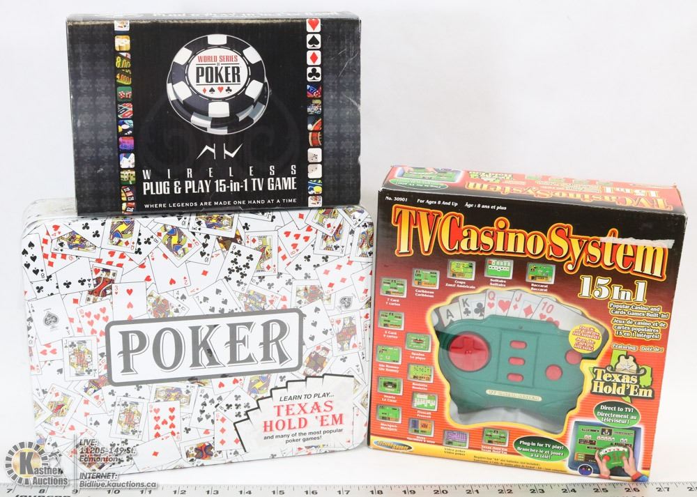 TV CASINO SYSTEM TEXAS HOLDEN 15-1 POKER W/LEARN TO PLAY TEXAS HOLD EM & EXCALIBUR WORLD SERIES CASINO POKER WIRELESS PLUG & PLAY 15-1 GAMES.
