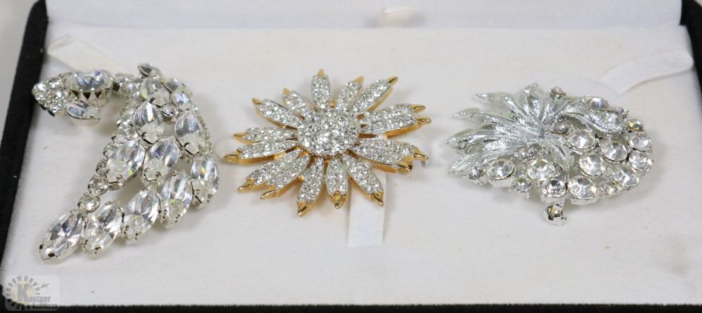 SET OF 3 VINTAGE RHINESTONE BROOCHES