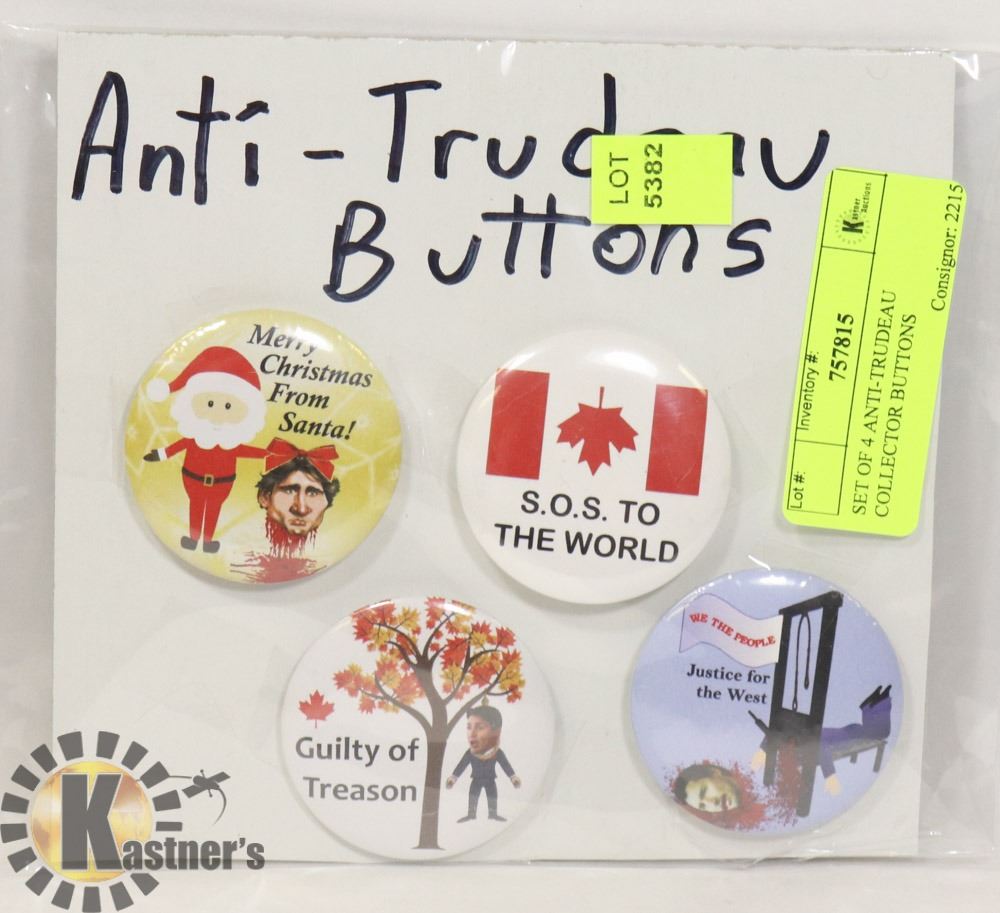 SET OF 4 ANTI-TRUDEAU COLLECTOR BUTTONS