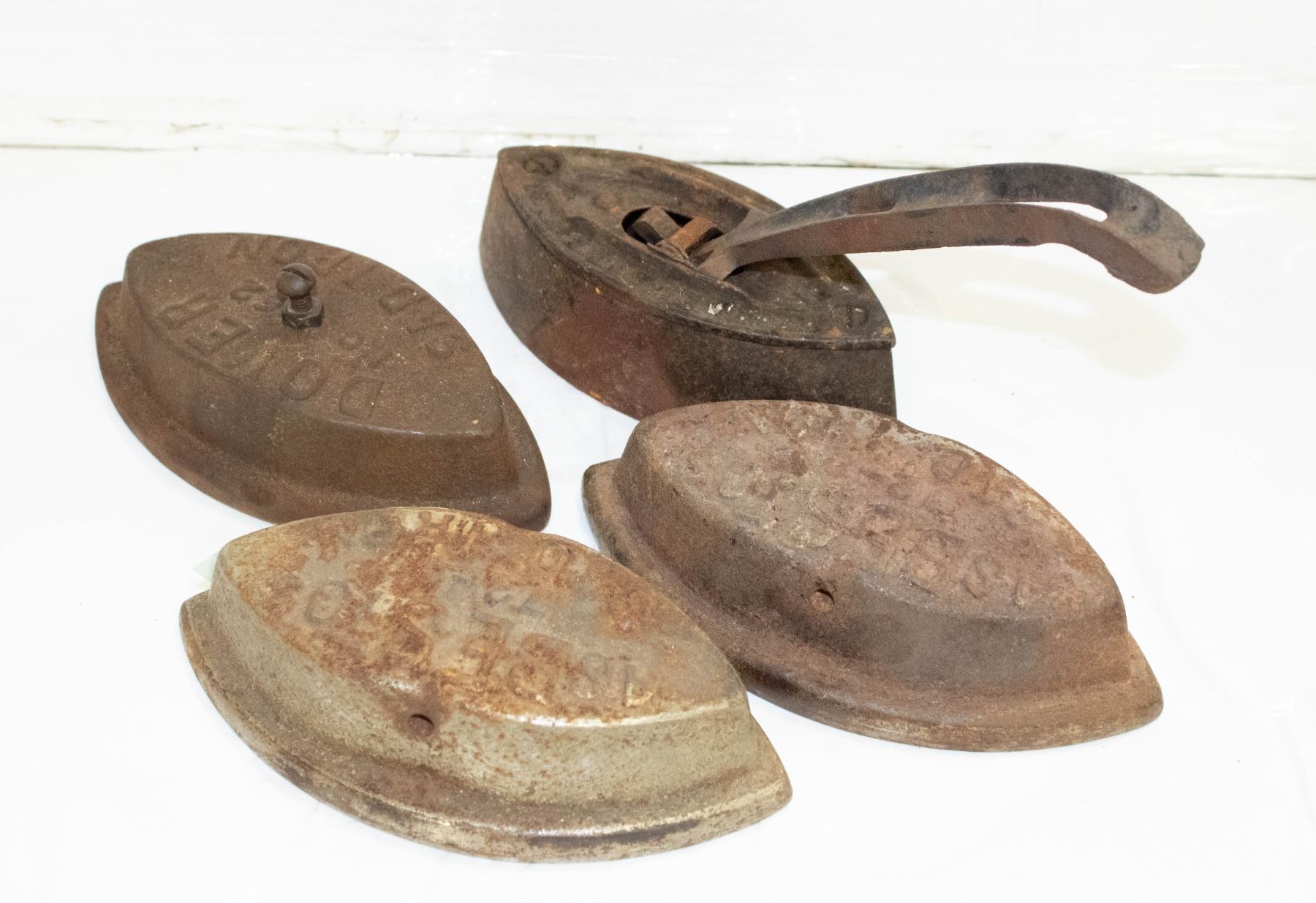 SET OF 4 ANTIQUE SAD IRONS WITH STOVE LIFTER
