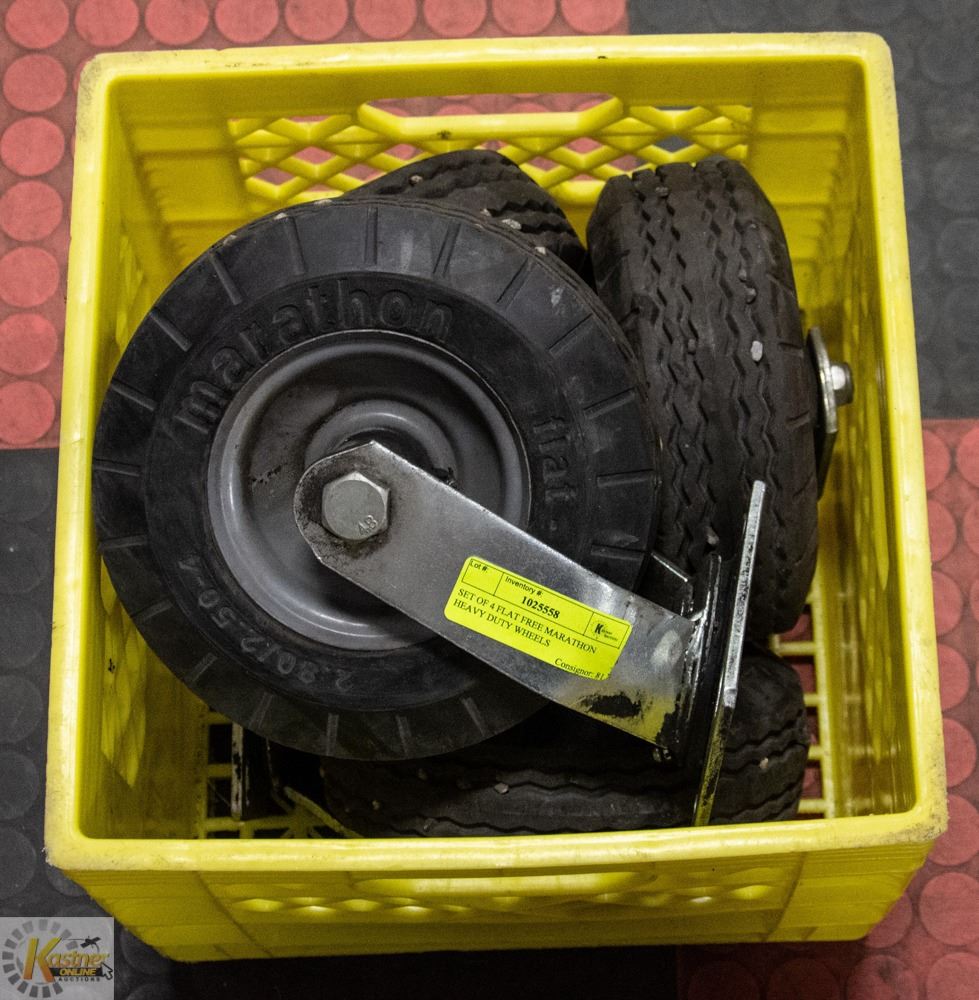 SET OF 4 FLAT FREE MARATHON HEAVY DUTY WHEELS