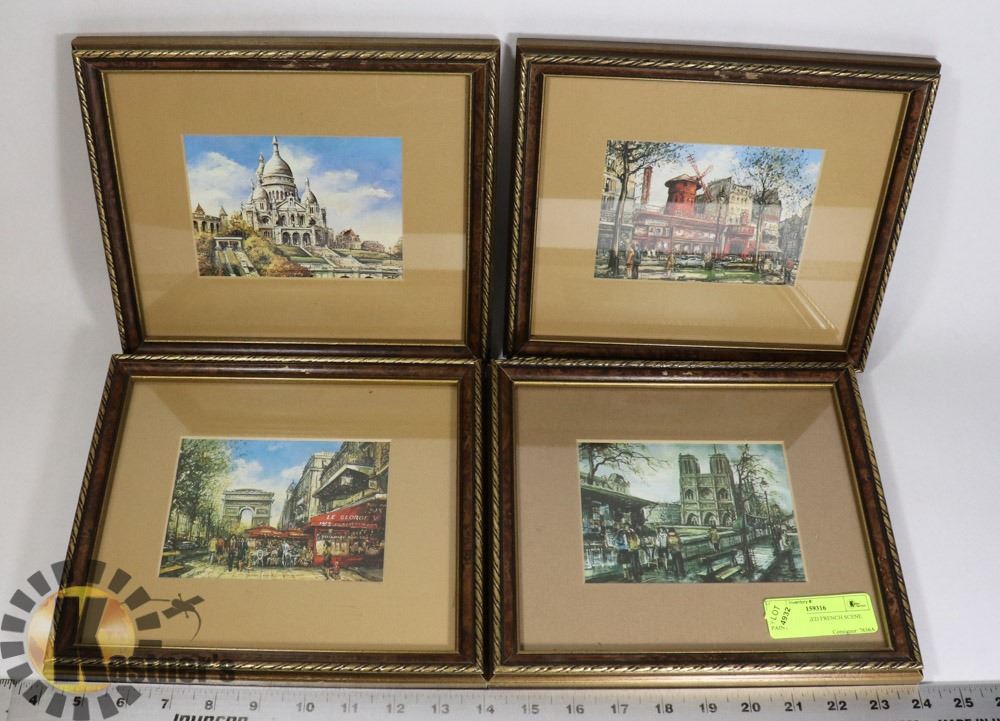 SET OF 4 FRAMED FRENCH SCENE PAINTINGS