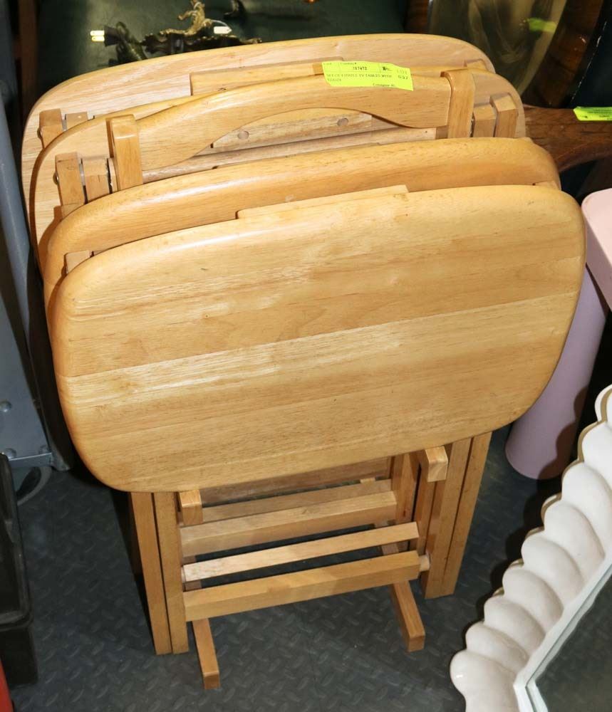 SET OF 4 MAPLE TV TABLES WITH STAND.