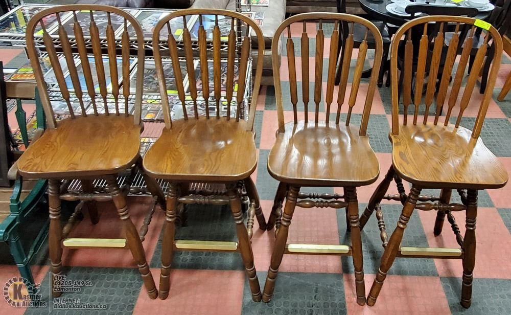 SET OF 4 OAK ARROWBACK BARSTOOLS, SEAT HEIGHT 30"
