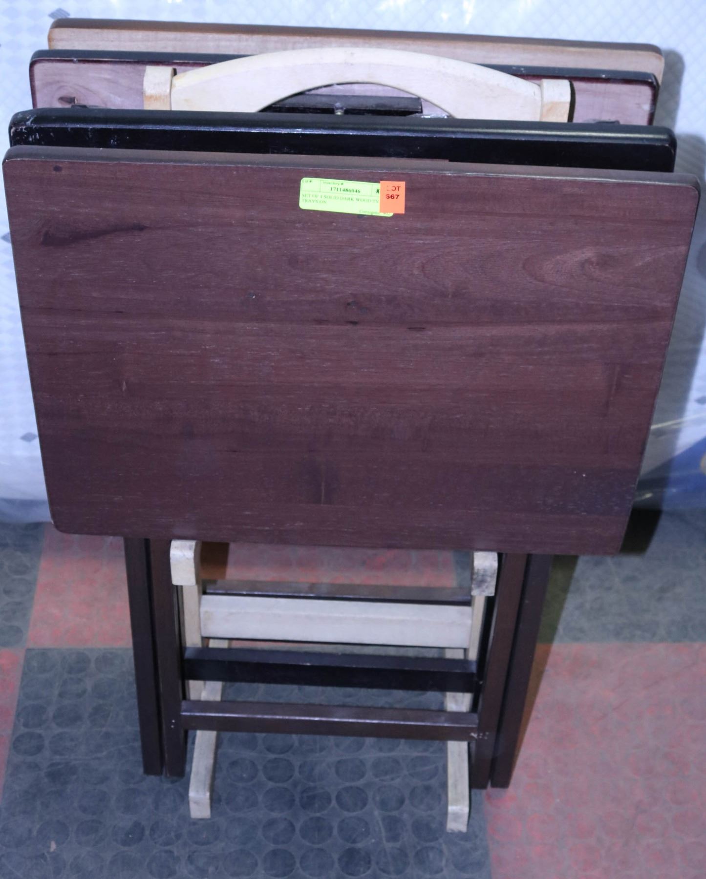 SET OF 4 SOLID DARK WOOD TV TRAYS ON