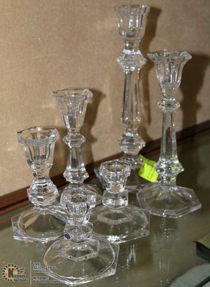 SET OF 6 CRYSTAL CANDLE HOLDERS-VARIOUS HEIGHTS