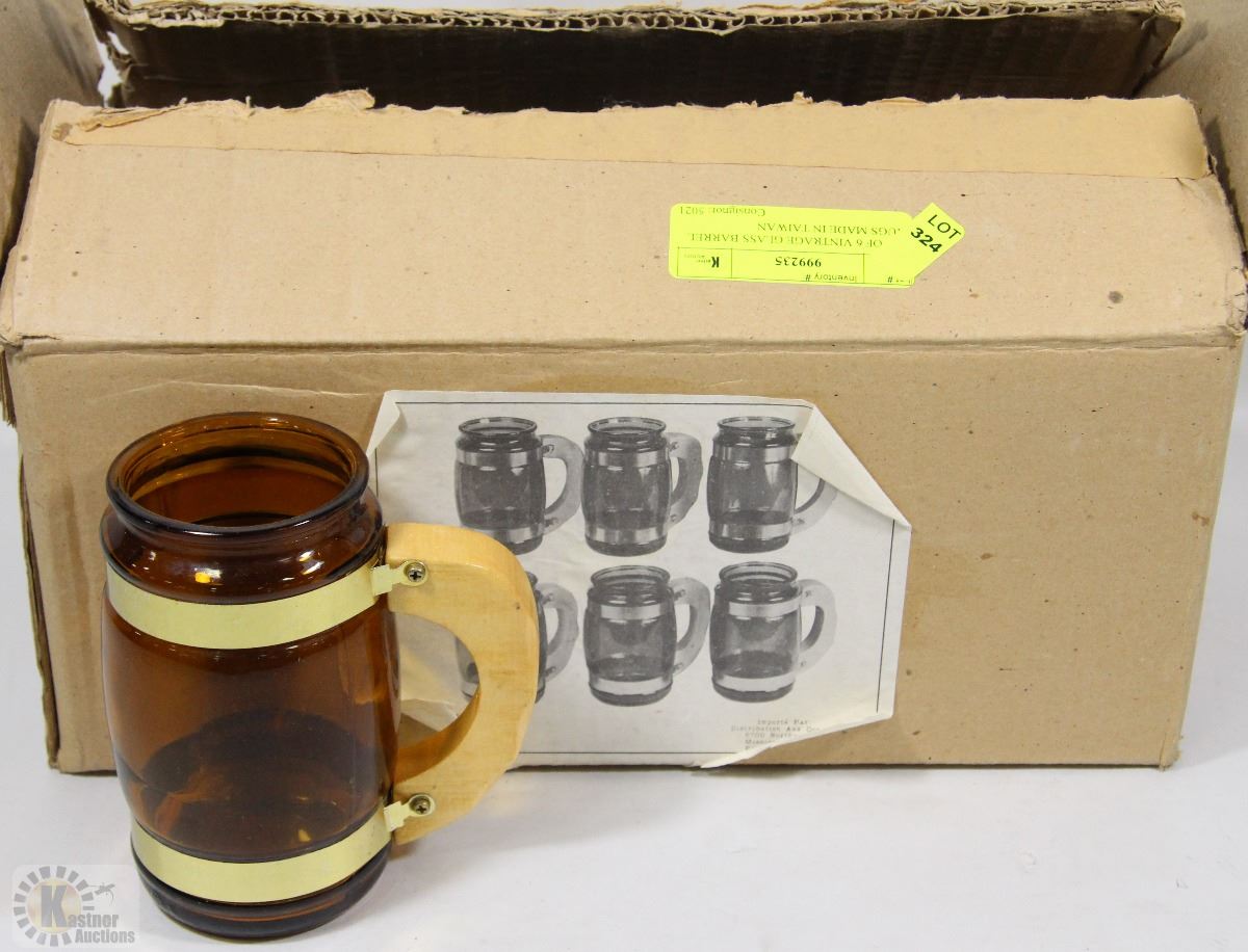 SET OF 6 VINTAGE GLASS BARREL MUGS MADE IN TAIWAN