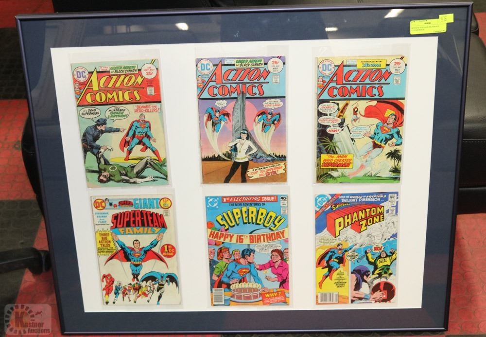 COMICS IN FRAME - INCL. SUPERBOY #1, SUPER-TEAM #1, PHANTOM ZONE #1, ETC.