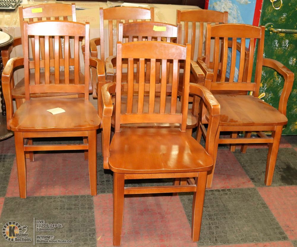 SET OF 7 SOLID WOOD ARMCHAIRS
