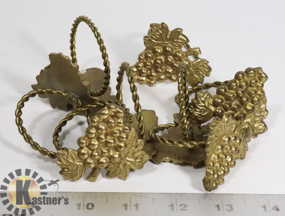 SET OF 8 BRASS NAPKIN HOLDERS GRAPES