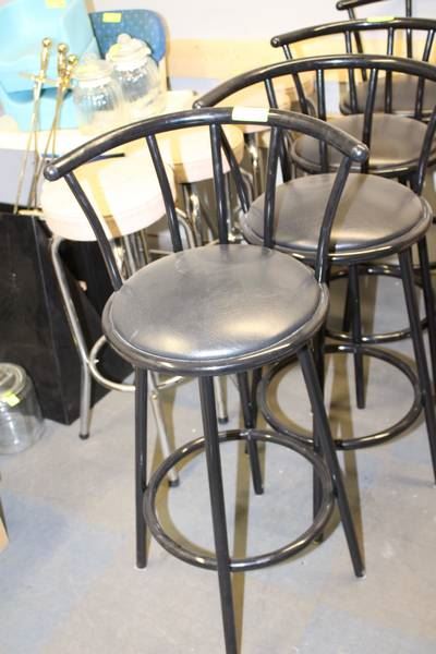SET OF FOUR BLACK LEATHERETTE BAR STOOLS
