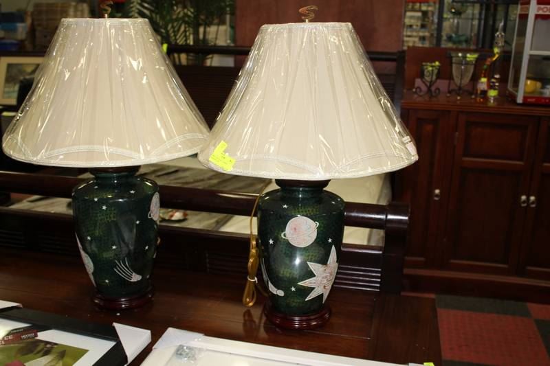 SET OF GREEN PORCELAIN "COSMOS" DESIGNER LAMPS