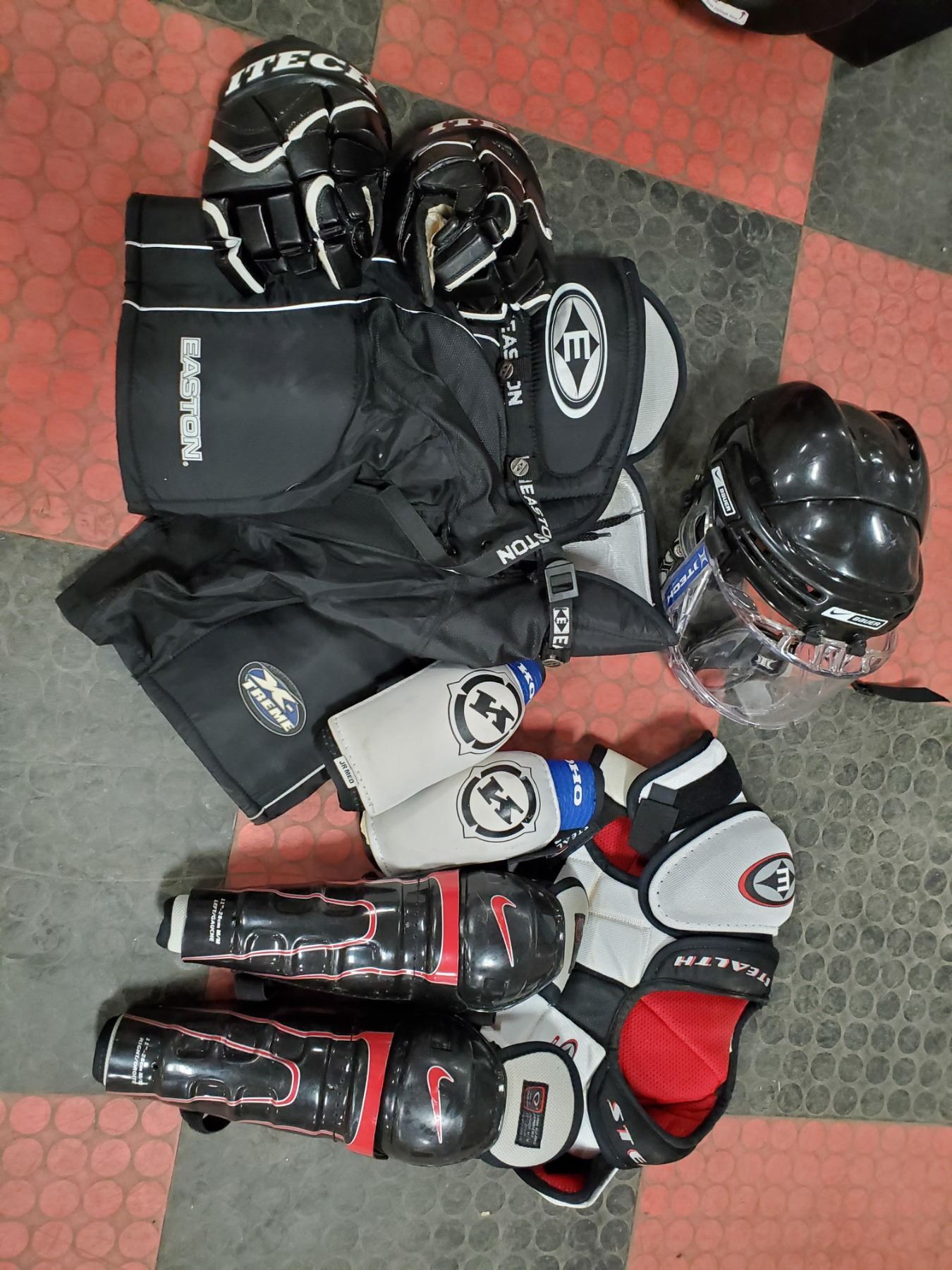 EASTONSHOULDER PADS, EASTON HICKEY SHORTS, ELBOW PADS, SHIN PADS AND GLOVES. SPORTS