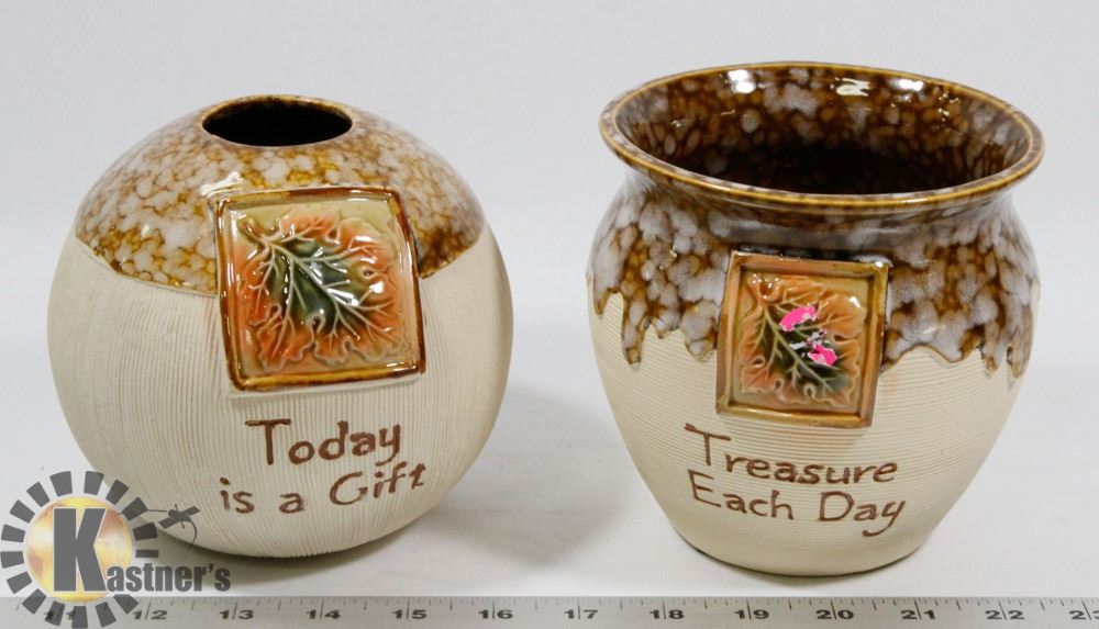 ONE IS A VASE ONE IS A PLANTER, THEY BOTH HAVE AN INSPIRATIONAL QUOTE,